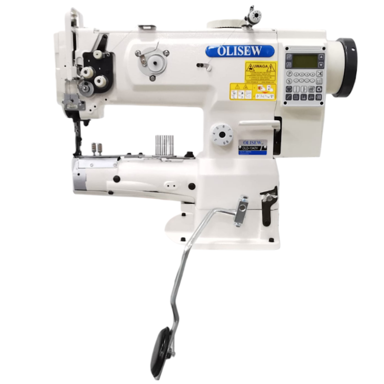 OLISEW OLD-1342V to profesjonalna stebnówka jednoigłowa z cylindrycznym łożem, potrójnym transportem (ząbki, igła, stopka) przeznaczona do lamowania materiałów grubych i ciężkich. Maszyna dedykowana jest do lamowania materiałów trudnych, grubych o utrudnionym transporcie (np. dywaniki samochodowe, torby, plecaki itp.). Potrójny transport wspomaga przesuw materiałów ciężkich. Maszyna wyposażona jest w ruchomą listwę do lamowania, do której w gratisie dodajemy lamownik (pistunek) do wyboru z serii KHF2.