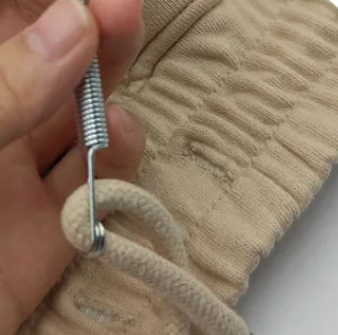 To poręczne narzędzie znacznie ułatwia nawlekanie sznurków, gumek i sznurowadeł, idealnie sprawdzając się w pracy z różnymi elementami odzieży – takimi jak bluzy z kapturem, spodenki kąpielowe, spodnie dresowe czy tunelowe obszycia.
